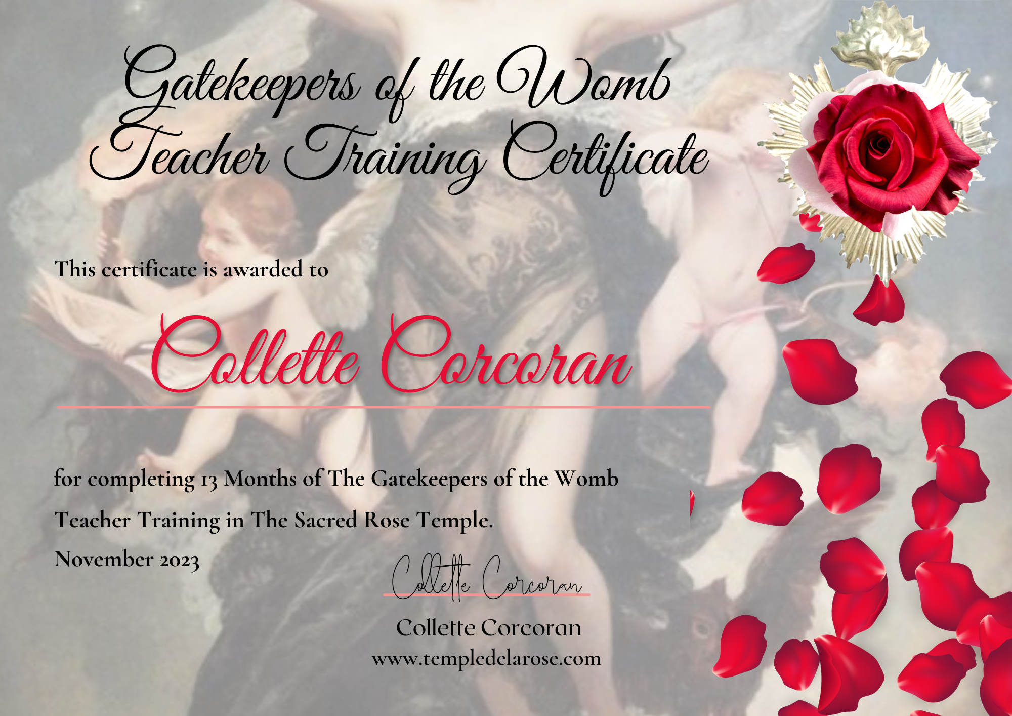 Not only will you engage in the practices to bring a new level of healing, energy, and magic to your womb, you will embody the practices so that you can work with them within The Sacred Rose Temple Mystery School as a Teacher of the Womb Gatekeepers Lineage. This will involve hosting summits, workshops, one-to-one sessions, training, retreats, and classes within the framework of The Rose Temple Mystery School. There will be ongoing training available and opportunities to work with and to be held in a school of women striving to empower women in this world. With the vision to create a real-life Mystery School.